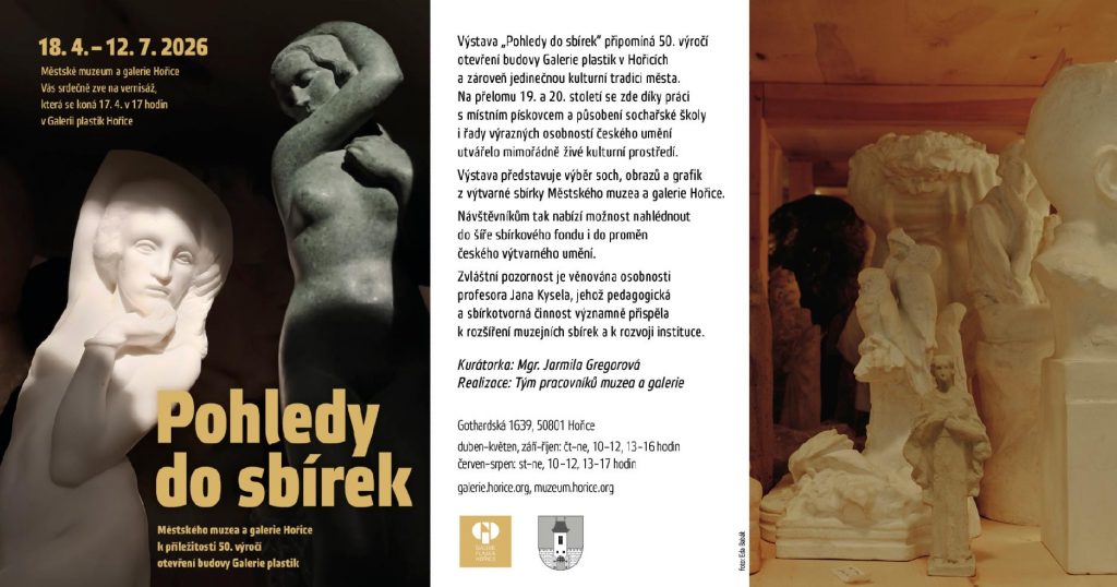 Výstava Pohledy do sbírek je připravena k příležitosti 50. výročí otevření budovy Galerie plastik v Hořicích. Připomíná jedinečnou kulturní tradici města, v němž se na přelomu 19. a 20. století díky práci s místním pískovcem a díky působení odborné školy sochařské a kamenické i řady výrazných osobností českého výtvarného umění utvářelo mimořádně živé kulturní prostředí.